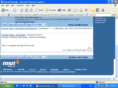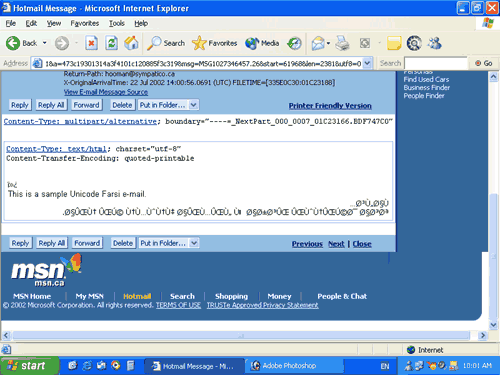 1.This is a sample Farsi mail send to a Hotmail account. As you can see the letters don't show up correctly.