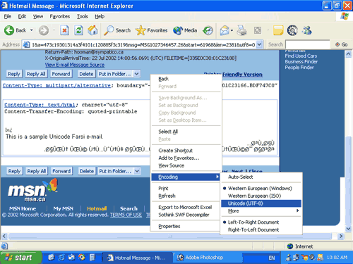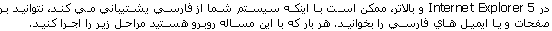 It is a very common problem is Internet Explorer 5 and above that even though your browser supports Farsi, yet you can not read some Farsi pages, specially Farsi e-mails sent to your Yahoo or Hotmail account. Follow these steps Every time the problem occurs and you can read Farsi: